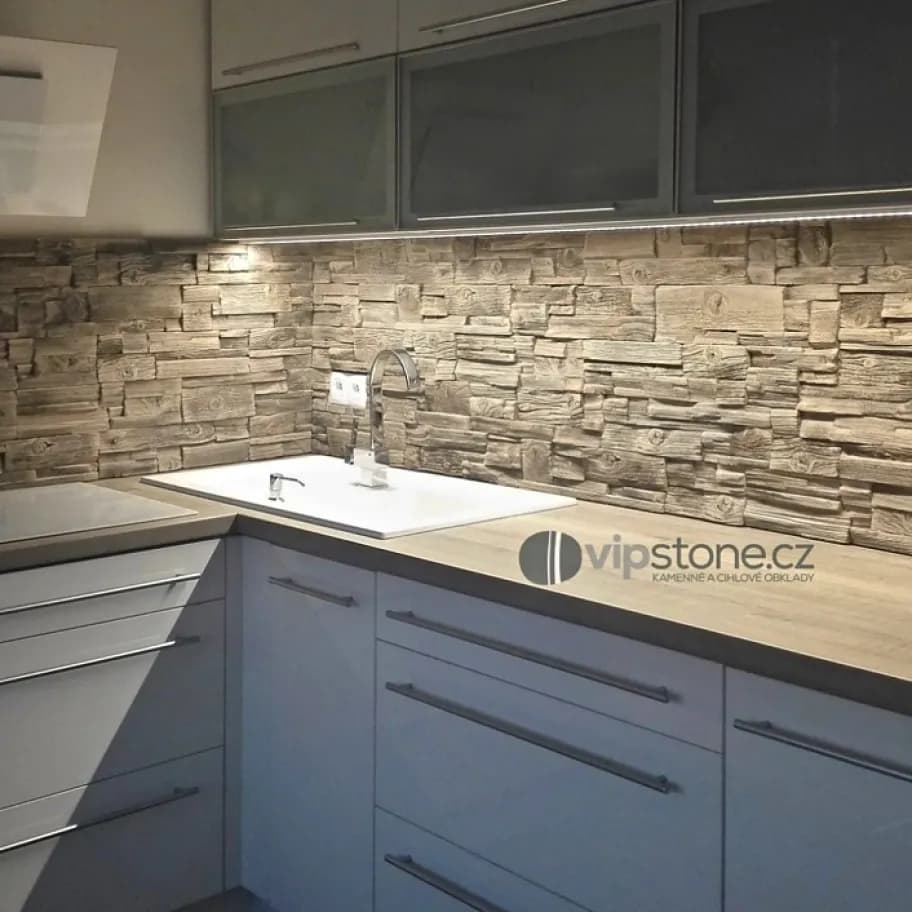 Obkladový kameň Decorstone Drevo dub je verná imitácia starého dreva s detailným zobrazením drevenej vráskavej štruktúry so zachovanými sukmi, ktoré dodávajú obkladu ešte prirodzenejší vzhľad. Príslušenstvom k obkladu sú krajové kusy, ktoré dotvárajú kompaktný celok.