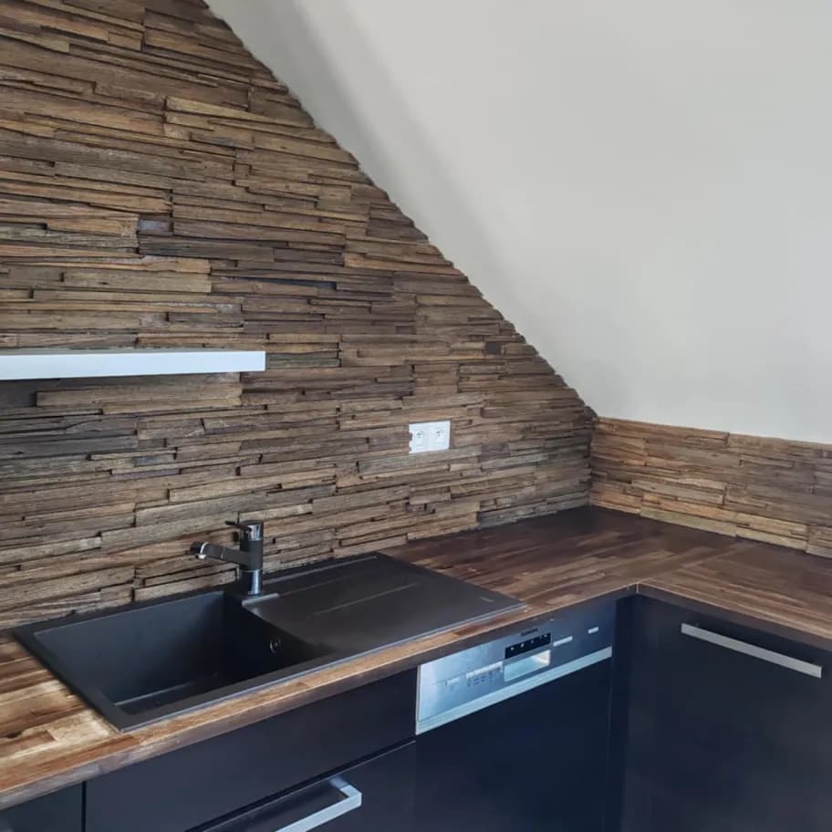 Exkluzívny obkladový kameň Exclusive Drevo orech prináša jedinečný dizajn a vynikajúce vlastnosti betónu v kombinácii s prírodným vzhľadom dreva. Tento produkt je ideálnym riešením pre tých, ktorí túžia po elegantnom a zároveň praktickom obklade pre interiéry aj exteriéry.  Flexibilná inštalácia: Je možné ho aplikovať horizontálne aj vertikálne, čím ponúka rôzne možnosti dizajnu a estetického stvárnenia vašich priestorov. Jednoduchá montáž. Uloženie bez špár.