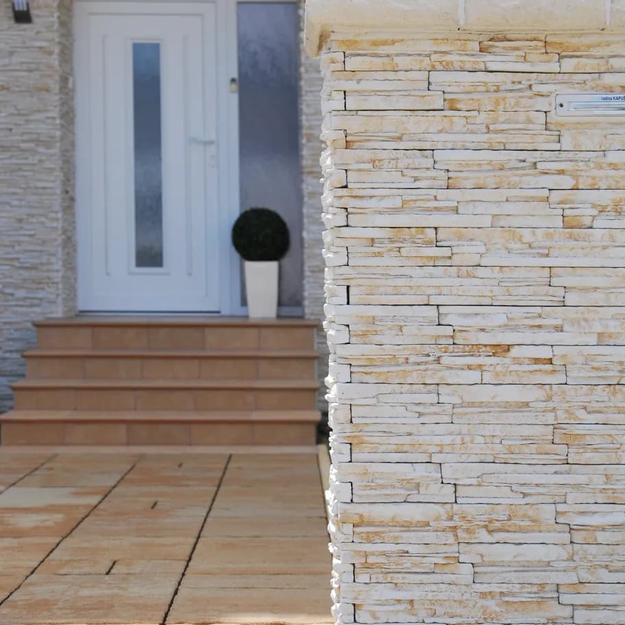 Kameň Považan biely je svetlý kamenný obklad na stenu, ktorý dodáva priestoru čistý a elegantný vzhľad. Štruktúra jemne spojených lámaných kúskov kameňa v kombinácii s kamennými odštiepkami vytvára autentický efekt prírodného vrásnenia a zaujímavú povrchovú textúru. Biely odtieň opticky rozjasňuje interiér a dokáže zväčšiť menšie priestory, preto je obľúbený pri moderných interiérových stenách, krboch alebo dekoratívnych častiach fasád. Zubové spoje jednotlivých obkladačiek zabezpečujú plynulé napojenie a prirodzený vzhľad aj na členitých plochách. Jednoduchá montáž. Uloženie bez špár.