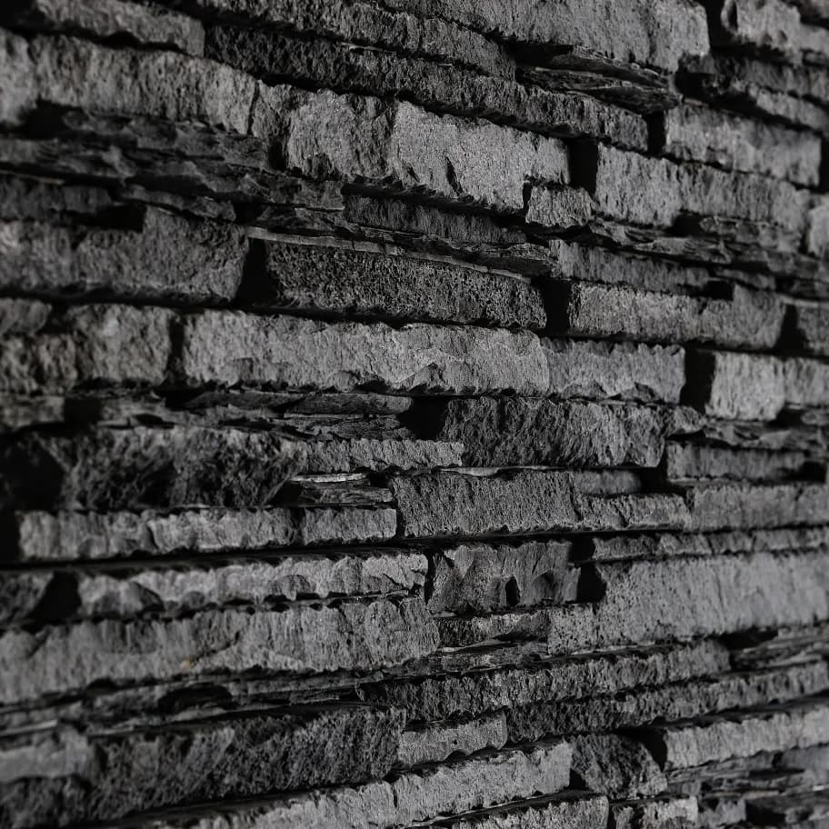 Kameň Považan čierny je výrazný kamenný obklad na stenu, ktorý zaujme svojím hlbokým čiernym odtieňom a detailnou štruktúrou lámaného kameňa. Štruktúra jemne spojených lámaných kúskov doplnených kamennými odštiepkami vytvára realistický efekt prírodného vrásnenia a dodáva stenám plastický vzhľad. Čierny kamenný obklad je ideálny pre moderné interiéry aj exteriéry, kde vytvára kontrast k svetlým materiálom a zvýrazňuje architektonické prvky. Vďaka zubovým spojom jednotlivých obkladačiek vynikne aj na menších plochách s množstvom deliacich línií, ako sú krbové steny, barové pulty alebo dekoratívne časti fasád. Jednoduchá montáž. Uloženie bez špár.