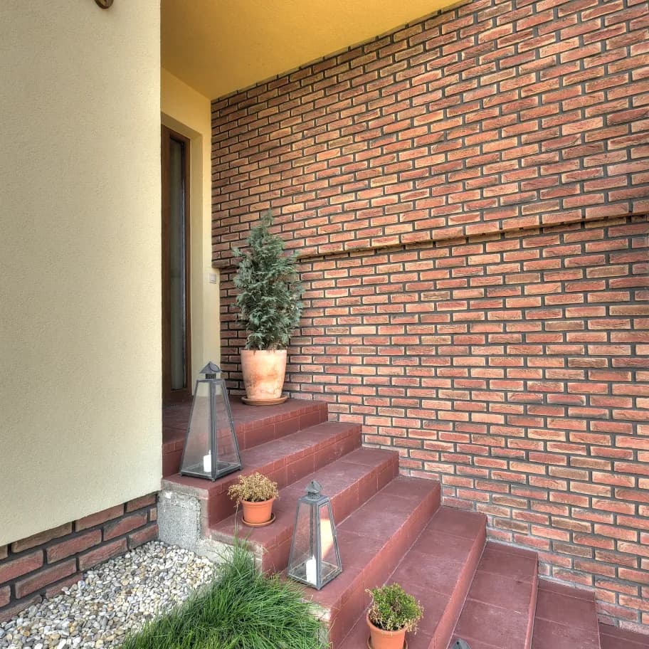 Tehlovka klasik terakota je dekoratívny tehlový obklad verne imitujúci vzhľad tradičnej pálenej tehly, ktorá sa používala na historických stavbách a mestských domoch. Typická terakotová farebnosť prináša do architektúry prirodzené teplé tóny a vytvára autentickú atmosféru klasickej tehlovej steny. Tento obklad je vhodný na široké spektrum využitia – od obkladov soklov, krbov a komínov až po dekoratívne steny v interiéri alebo celé fasádne plochy v exteriéri. Vďaka melírovaným odtieňom jednotlivých tehličiek pôsobí povrch veľmi prirodzene a realisticky. Farbu škárovacej hmoty je možné zvoliť podľa požadovaného vzhľadu stavby, čím možno dosiahnuť rôzne architektonické efekty. Uloženie vždy so špárou. Jednoduchá montáž, časovo náročnejšia na špárovanie.