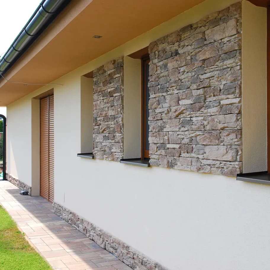 Rock brown is a decorative stone wall cladding with a layered rock structure and a warm brown colour blend inspired by natural stone formations. The textured surface creates an authentic rock wall appearance that enhances both exterior and interior spaces. It is ideal for façades, garden walls, pillars, and architectural features. Indoors, it is commonly used for fireplace surrounds, chimney walls, or decorative feature walls that add warmth and character to the interior. Lighting highlights the depth of the stone layers and enhances the natural stone effect. Easy installation. Gapless placement.